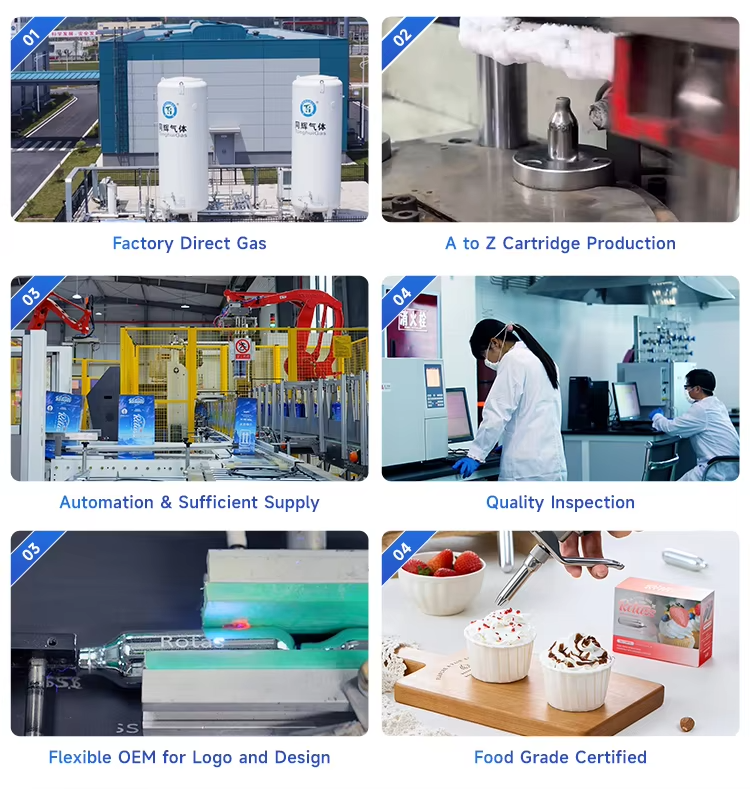 Changsha Ruitang Technology Co., Ltd. is a professional food gas bomb supplier in China, providing high-quality food gas supply and application services for chain catering enterprises nationwide. We have a complete production supply chain system and a strict quality control system. Strict quality control, large production capacity and output, can meet the high standard requirements of chain catering.